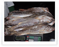 It has a long body and a double dorsal fin. Its average size ranges from 45 to 55 cm. and it weights around 1 or 2 Kg. It is a commercialized species.